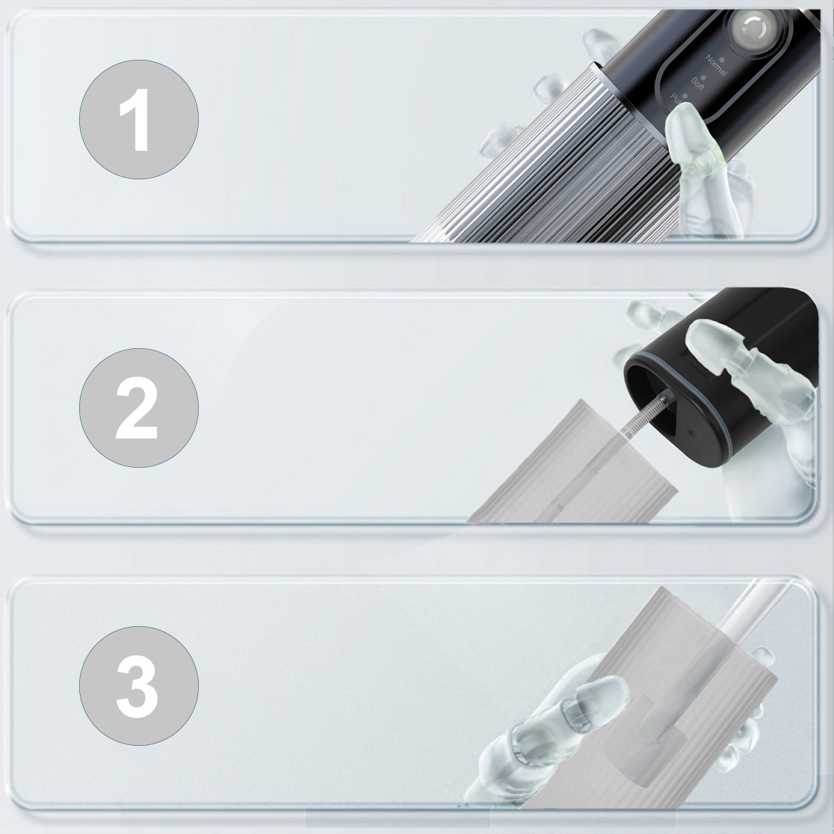 • 3 načini delovanja: mehak, normalni, impulzni – prilagodite intenzivnost svojim potrebam in občutljivosti dlesni.