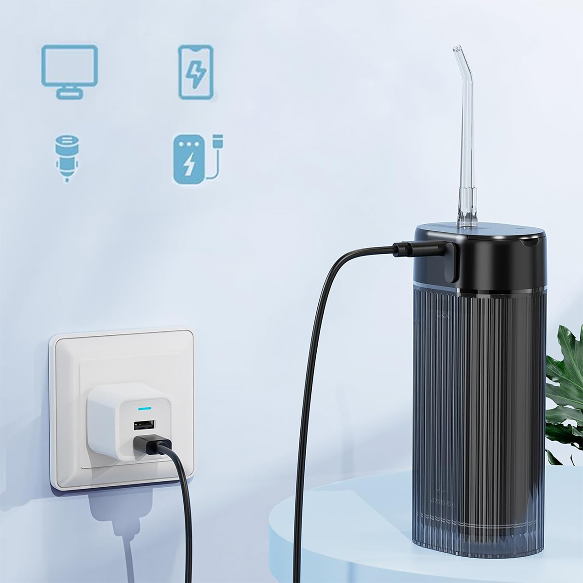 ➡️USB-kabel za polnjenje – zagotavlja hitro in priročno polnjenje irigatorja (združljiv z večino USB-polnilnikov)