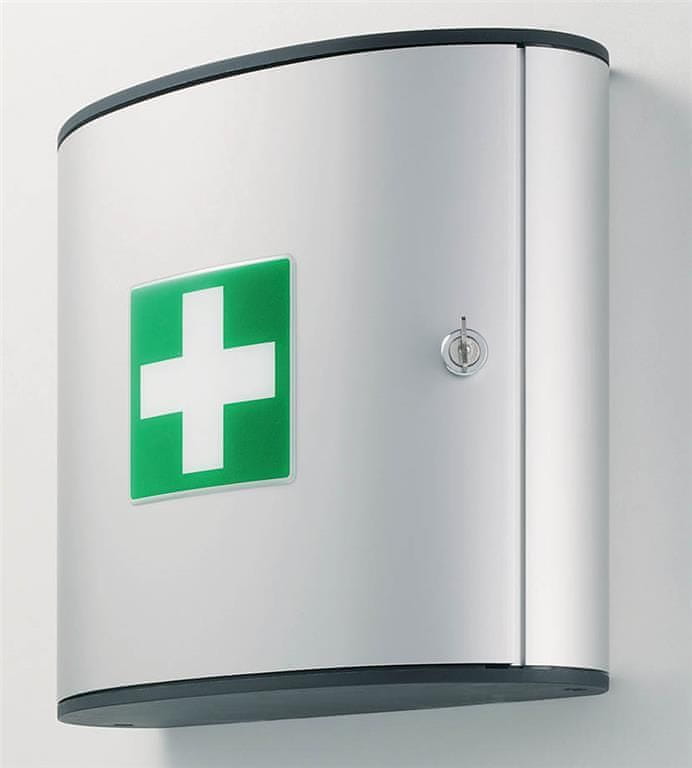 Omarica za prvo pomoč iz visoko kakovostnega aluminija. Priložen pribor za montažo na steno. Dva premična predala. Velikost 280×302×118mm. DIN 13164. Celoten opis