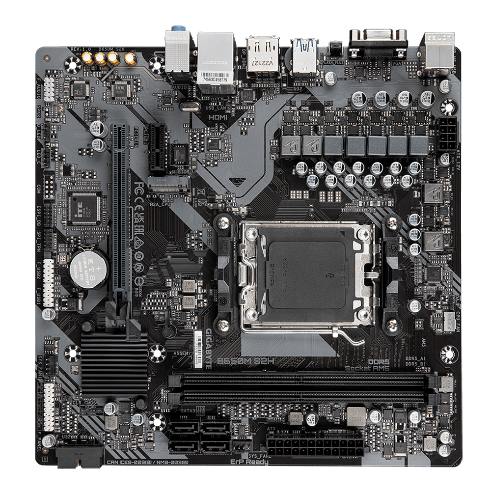 B650M S2H osnovna plošča z AM5 podnožjem za procesorje serije AMD Ryzen™ 7000 in Ryzen™ 8000. Podpira PCIe 4.0 x16 režo, PCIe 4.0 M.2 režo in DDR5 RAM. Celoten opis