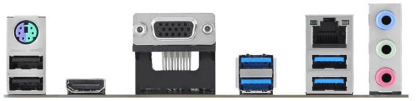 | Zunanji konektorji | 4× USB 3.2 Gen 1 (5G) (4 x Type-A) 2× USB 2.0 (2 x Type-A) 1× VGA 1× HDMI 1× Realtek 2.5Gb Ethernet 3× Audio 1× PS/2 tipkovnica/miška |