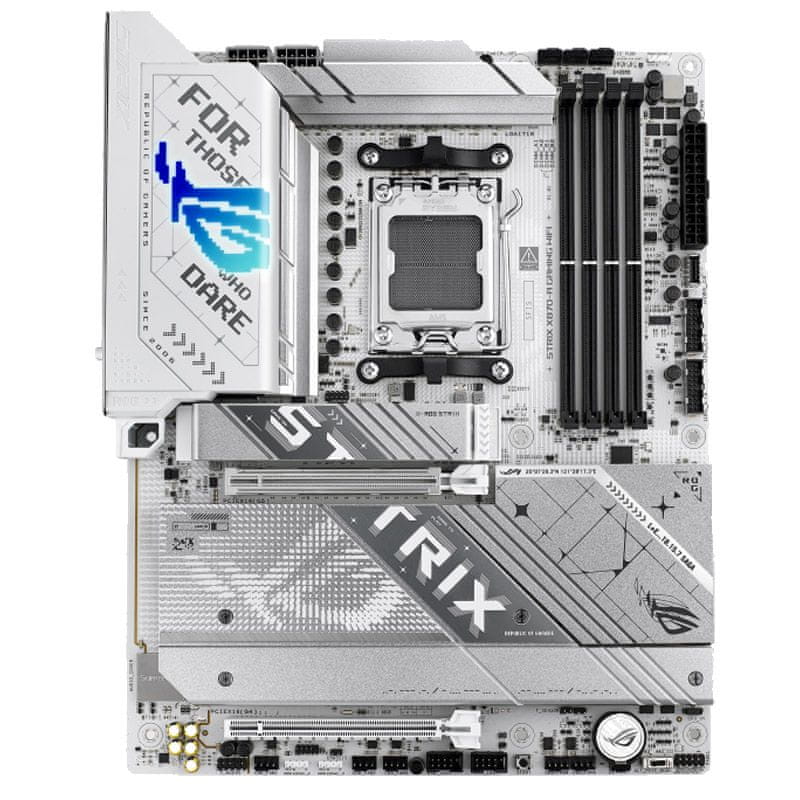 Izboljšajte svoj računalnik z ROG Strix X870-A Gaming WiFi. Ta matična plošča z elegantnim belim tiskanim vezjem in podporo za procesorje serije AMD Ryzen 9000 zagotavlja moč in povezljivost, ki sta potrebna za napredne aplikacije AI. S podporo za DDR5, polnimi zmogljivostmi PCIe 5.0, dvojnimi vrati USB4 in WiFi 7 je vrhunska mešanica sloga in zmogljivosti.
