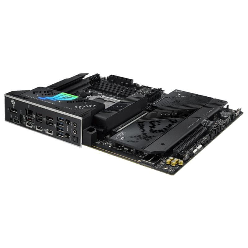 ROG Strix X870-F je eleganten in obenem skromen, kar vam omogoča, da ga brezhibno kombinirate s široko paleto sistemskih komponent. Njegovo globoko črno tiskano vezje in ujemajoči se kovinski hladilniki ustvarijo temen in intenziven videz, medtem ko dotik RGB osvetlitve na ohišju V/I omogoča, da ostanete izpod radarja ali daste drzno izjavo.