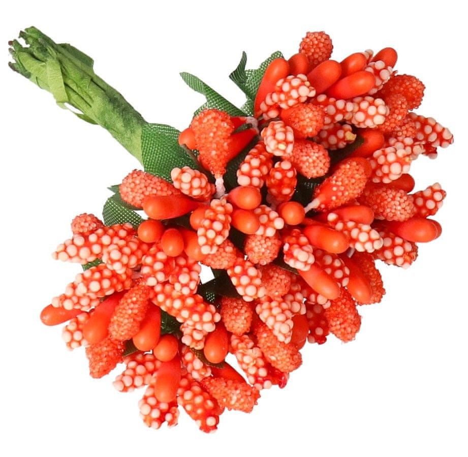 En šopek je sestavljen iz 11 vejic z biserno oblikovanimi glavicami, obdanih z listi iz blaga.