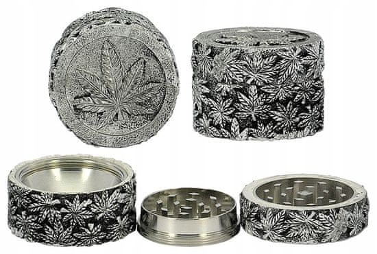 Ta mlinček premera 5 cm je sestavljen iz treh delov in ima dve komori: eno za mletje zelišč in eno za zbiranje cvetnega prahu različnih debelin, ki nastane med mletjem.