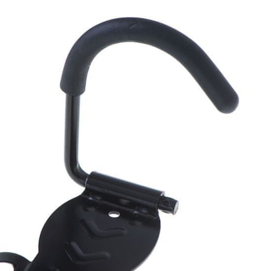 Jekleni nosilec za kolo za montažo na steno. Obešalnik omogoča obešanje kolesa na steno za obroč sprednjega kolesa. S tem se zmanjša prostor, potreben za shranjevanje enokolesnika. Primeren je za katero koli vrsto kolesa. Viseči nosilec je prekrit z gumijastim rokavom, ki ščiti kolo pred poškodbami
