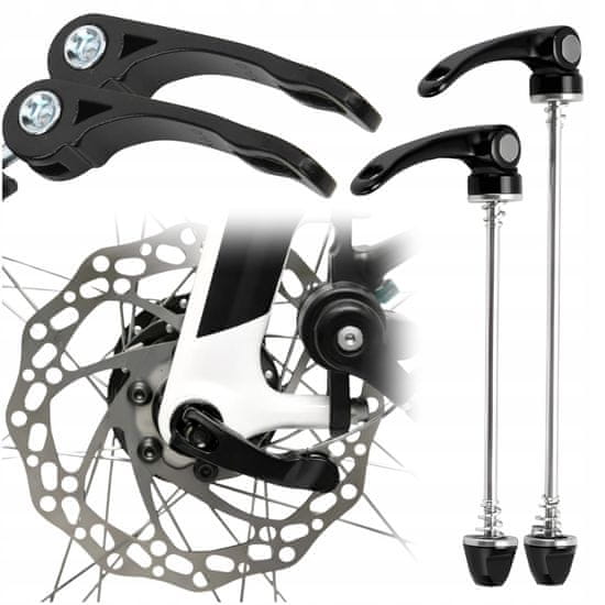 Univerzalni komplet hitrozapiralcev za kolesarske pesto (spredaj + zadaj) omogoča hitro montažo in demontažo koles brez uporabe orodja. Sistem Quick Release je idealen za vsakodnevno uporabo, servisiranje ali lažji transport kolesa v avtomobilu. Hitrozapiralca sta izdelana iz trpežnega aluminija, zagotavljata stabilno pritrditev pesta v vilicah in okvirju ter zanesljivo delovanje tudi pri pogosti uporabi. Komplet vsebuje dva kosa: en hitrozapiralec za sprednje in en za zadnje kolo. Zaradi univerzalne zasnove je primeren za večino koles, vključno z MTB, mestnimi, treking, cestnimi, gravel, BMX, e-kolesi, tandemi in drugimi tipi, kjer se uporablja klasičen sistem hitrega zapenjanja.