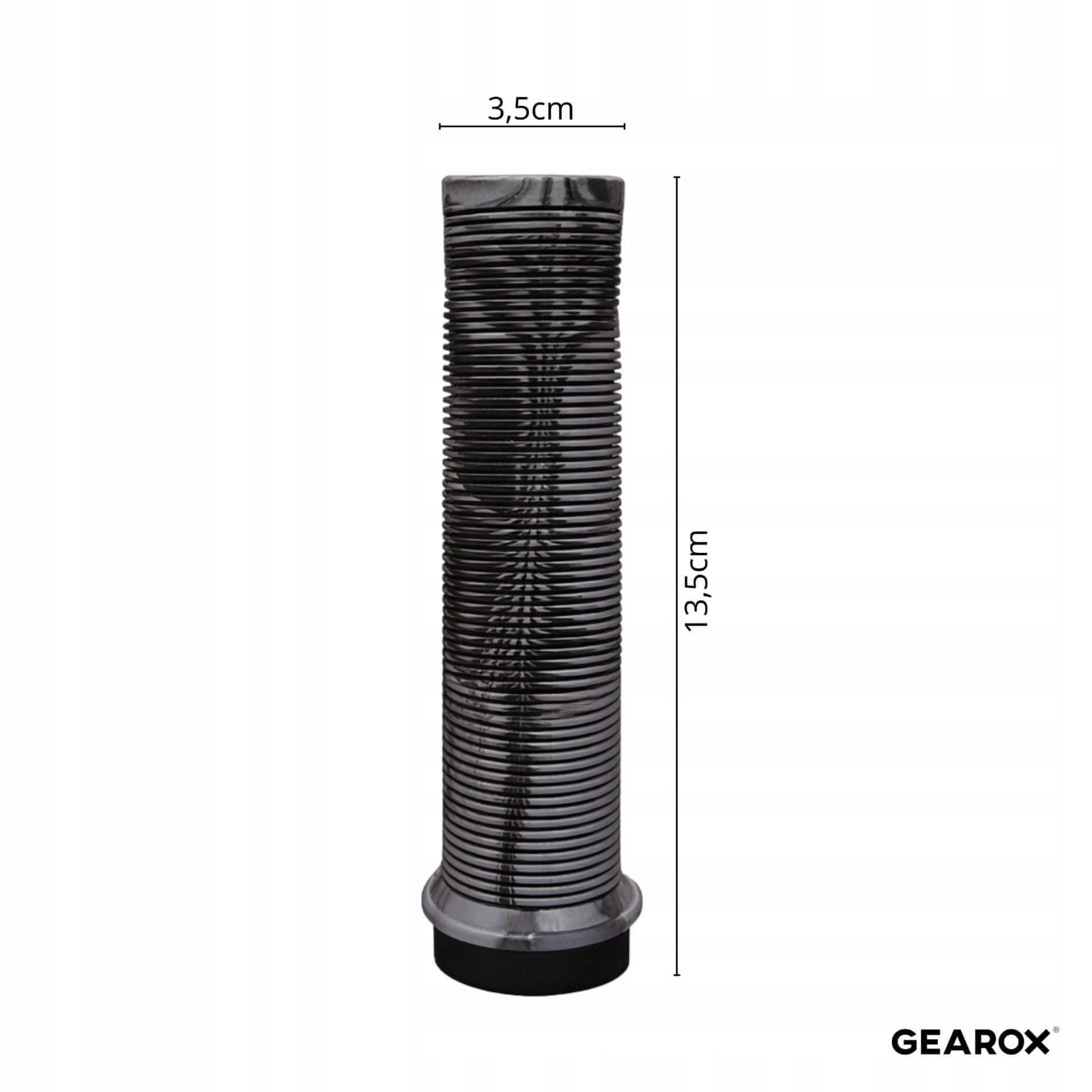 Sivi protizdrsni ročaji krmila Gearox za krmilo premera 22 mm so zanesljiva izbira za vsakodnevno vožnjo in daljše ture. Izdelani so iz kakovostne gume z nedrsečo teksturo, ki poskrbi za čvrst oprijem tudi v mokrih razmerah. Mehkejša, blažilna zasnova učinkovito zmanjšuje vibracije in udarce s podlage, zato so dlani manj obremenjene, udobje pa večje pri mestni, treking ali MTB vožnji. Ročaji imajo poln zaključek, zato odporni na obrabo in enostavni za čiščenje. Nevtralna siva barva z marmornim potiskom se estetsko ujema z večino koles in doda sodoben videz.