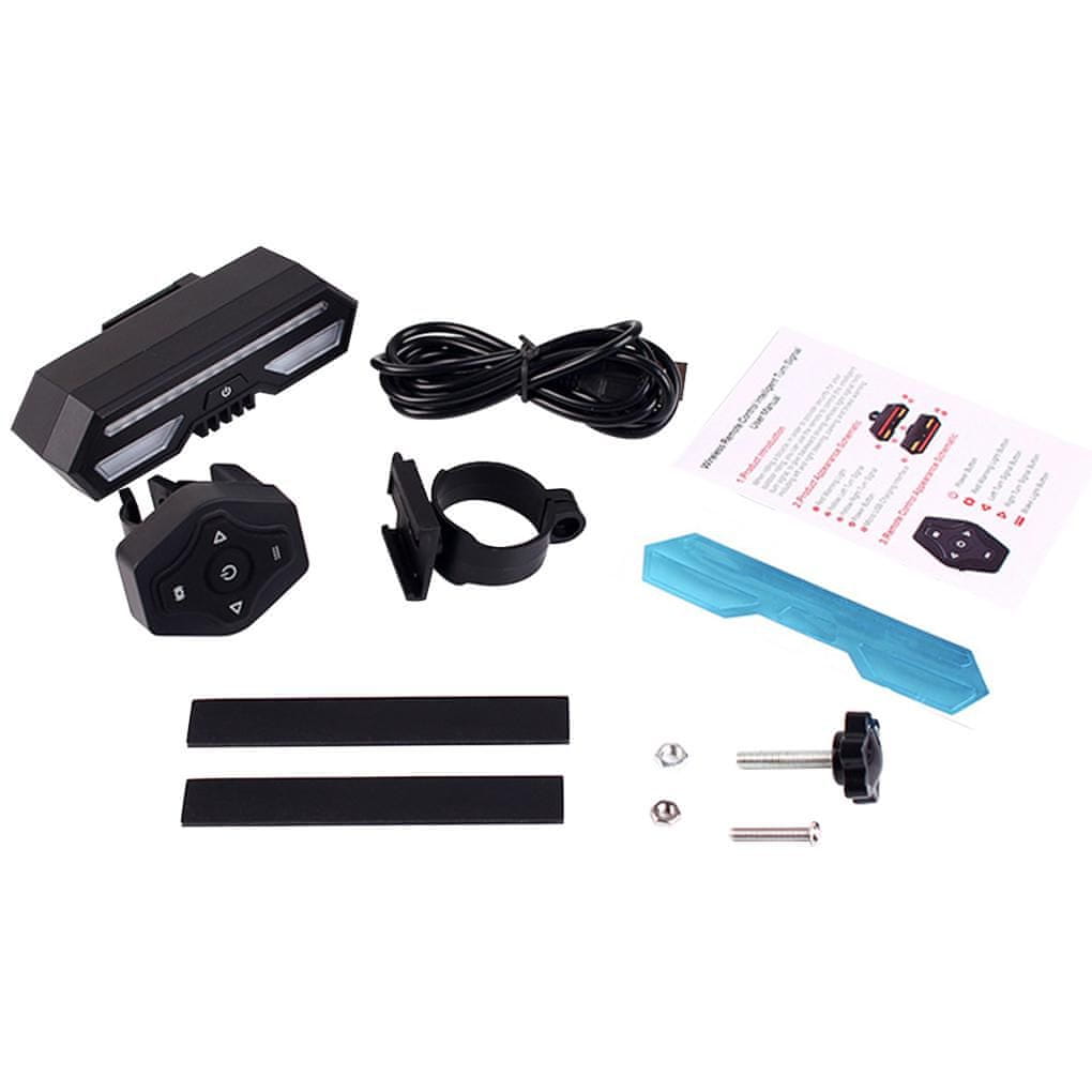 Ali veliko kolesarite v temi? Ta pametna kolesarska svetilka ima smernike in zavorne luči. S preprostim pritiskom priloženega daljinskega upravljalnika, pritrjenega na krmilo, lahko signalizirate, ali naj kolesarite v desno, levo ali če morate zavirati. Svetilka je vidna do 10 m razdalje in je vodoodporna, zato jo lahko uporabljate tudi v deževnem vremenu. Vsa potrebna orodja za montažo so priložena. Tako svetilka kot daljinski upravljalnik se polnita s priloženim USB kablom.
