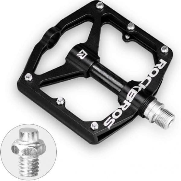Trpežna in močna kolesarska pedala Rockbros so izdelana iz aluminija in imajo posebne zatiče, ki povečajo oprijem med čevljem in platformo. Široka in udobna platforma zagotavlja enakomerno oporo stopala med vožnjo.