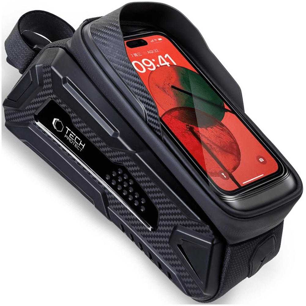 V2 „L“ je praktična kolesarska torba znamke Tech-Protect, nameščena na okvir kolesa. Etui je idealen za shranjevanje majhnih predmetov, npr. power bank, denarnice ali ključev. Torba je narejena iz praho in vodoodpornega PC materiala, odpornega na udarce, s prozornim okencem, občutljivim na dotik na sprednji strani (156×92 mm). Ta rešitev vam omogoča uporabo telefona med vožnjo, ne da bi morali napravo odstraniti iz ovitka.