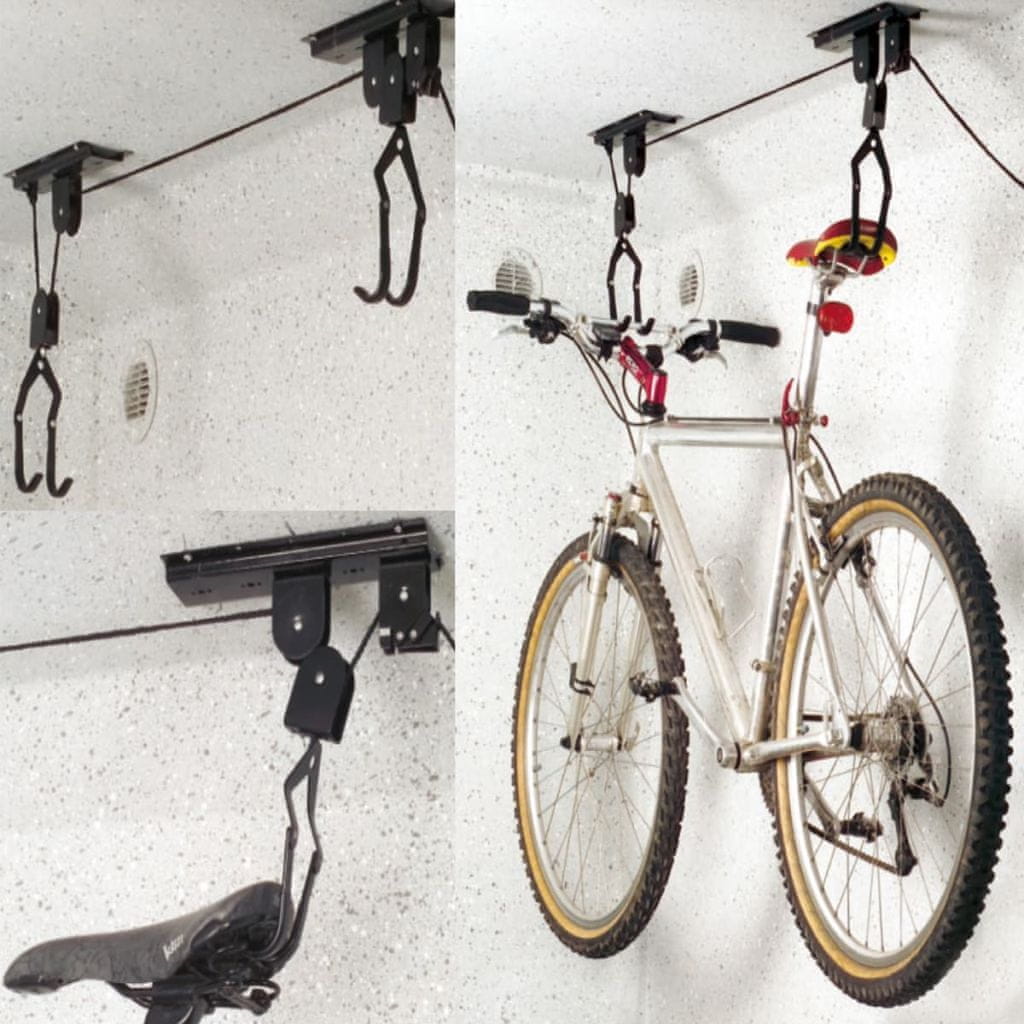 Stropno dvigalo za kolesa, znamke ProPlus, vam omogoča izkoristek neuporabljenega stropnega prostora za shranjevanje vašega kolesa. Popoln je za uporabo v kleti, lopi ali garaži, lahko pa ga uporabljate tudi v hiši.