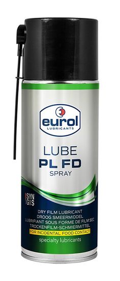 Eurol Lube PL FD Spray je „suho“ mazivo s tehnologijo Eurol SYNGIS za uporabo v živilski industriji. Eurol Lube PL FD Spray je bil razvit za „suho“, čisto in trajno mazanje brez kapljanja za številne aplikacije, kjer so potrebne odlične drsne, penetracijske in protikorozijske lastnosti. Izrinja vlago, se upira vodi in rahlja korodirane dele. Zaradi svojih „suhih“ mazalnih lastnosti ne zadržuje umazanije in peska.
