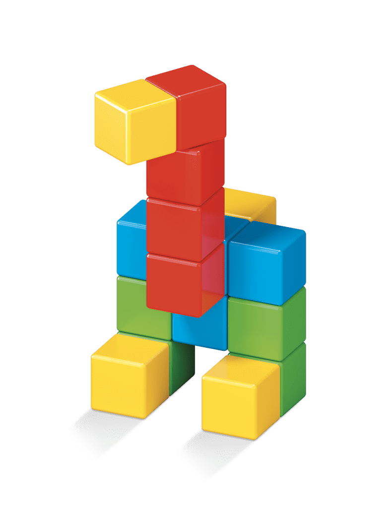 Magnetne kocke z edinstveno notranjo konstrukcijo, zaradi katere se privlačijo z vseh strani. Vsebuje 16 magnetnih kock v štirih barvah.