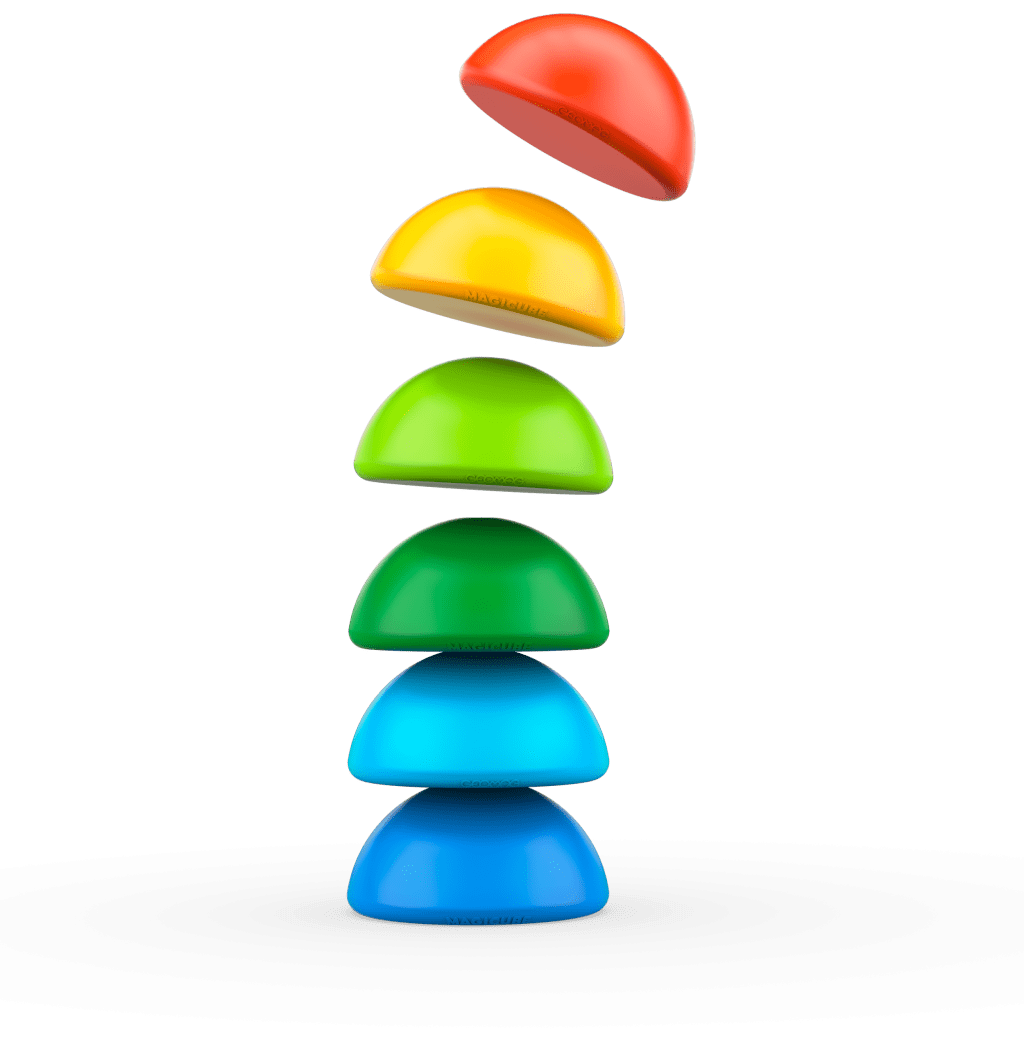 Magnetni komplet Tudi majhni dojenčki uživajo v gradnji stolpov Vključuje šest magnetnih polkrogel v šestih barvah Izdelano v Švici iz reciklirane plastike
