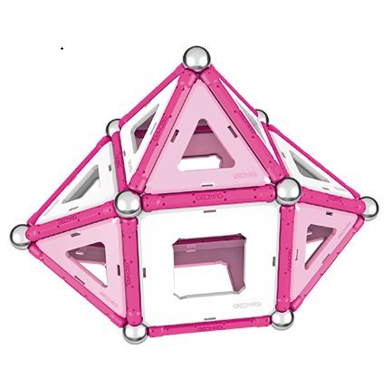 GEOMAG Pink – vsebuje 68 kosov: 24 6 cm dolgih palic v roza barvi, 20 ponikljanih kroglic in polnila – 12 roza trikotnikov, 10 belih kvadratov in 2 roza peterokotnika. Komplet je primeren za otroke od 3. leta starosti dalje. Število palic: 24 (6 cm) Število kroglic: 20 Število polnil: 24 (12 trikotnikov, 10 kvadratov in 2 peterokotnika) GEOMAG je švicarski gradbeni komplet, ki omogoča sestavljanje najrazličnejših oblik, predmetov in vzorcev. Osnovni gradniki so magnetne palice s plastično ali fosforno prevleko in ponikljane kroglice s premerom 12,7 mm. Drugi elementi kompleta so osnovne plošče in plastične pregrade (polnila). Gradbeni kompleti GEOMAG se lahko uporabljajo ne le za igro, temveč tudi kot privlačen učni pripomoček v šolah. GEOMAG spodbuja ustvarjalnost, domišljijo, fino motoriko in kombinacijske sposobnosti. GEOMAG je izdelan s švicarsko natančnostjo, v skladu z najstrožjimi mednarodnimi merili kakovosti in varnosti, je zdravstveno neoporečen in ima odlično odpornost proti obrabi.