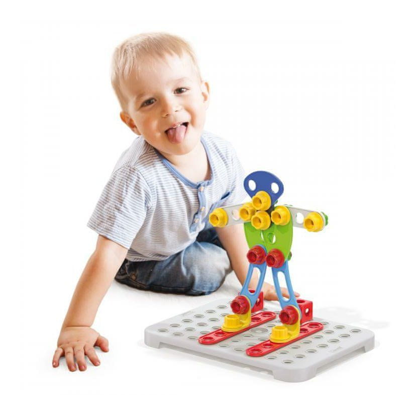 Vijake, matice, krilne matice, kolesa in perforirane dele iz trpežne plastike, ki se ne drobi, je mogoče sestaviti brez uporabe orodja. Otroci bodo potrebovali le svoje roke in domišljijo. Pravzaprav ta komplet vsebuje vse, kar potrebujejo za sestavljanje robotov, živali ali česar koli drugega, kar si lahko zamislijo. Zahvaljujoč perforirani podlagi je mogoče sestaviti tako vodoravne kot navpične strukture. Začetni komplet Tecno Jumbo razvija koordinacijo, logično mišljenje in ustvarjalnost ter otrokom pomaga razumeti osnovna načela mehanike na zabaven način. Nagrajen z nazivom „Prava igrača“. 18 dvodimenzionalnih navojnih delov4 tridimenzionalni navojni deli28 vijakov, matic in podložk2 kolesa1 album s 6 primeri modelov: pes, jadrnica, tovornjak z žerjavom, avto, dva različna robota Glavne značilnosti: Prava igrača" se podeljuje izdelkom, ki so namenjeni predšolskim otrokom in se odlikujejo predvsem po svojih izobraževalnih lastnostih, pa tudi po visokem standardu izdelave, udobju pri uporabi in estetski ravni. Namen ustvarjalcev nagrade je zagotoviti smernice in nagovoriti starše in vzgojitelje, ki želijo vplivati na smer ponudbe in menijo, da je zdrav osebnostni razvoj otrok najpomembnejši. S tem želijo ustvarjalci spodbuditi širitev in razvoj novih dragocenih igrač ali iger. Znak se podeljuje od leta 1994 in je skupni projekt Združenja za igrače in igro, Združenja za igrače pri Zvezi likovnih umetnikov Češke republike in Združenja za predšolsko vzgojo. Ta združenja skupaj z Muzejem dekorativne umetnosti v Pragi in Mestnim muzejem v Kamenici nad Lipou nagrado podeljujejo ob festivalu Hračkobraní, ki od leta 2006 vsako leto poteka na gradu v Kamenici nad Lipou, kjer je med drugim na ogled stalna razstava vseh nagrajenih igrač.