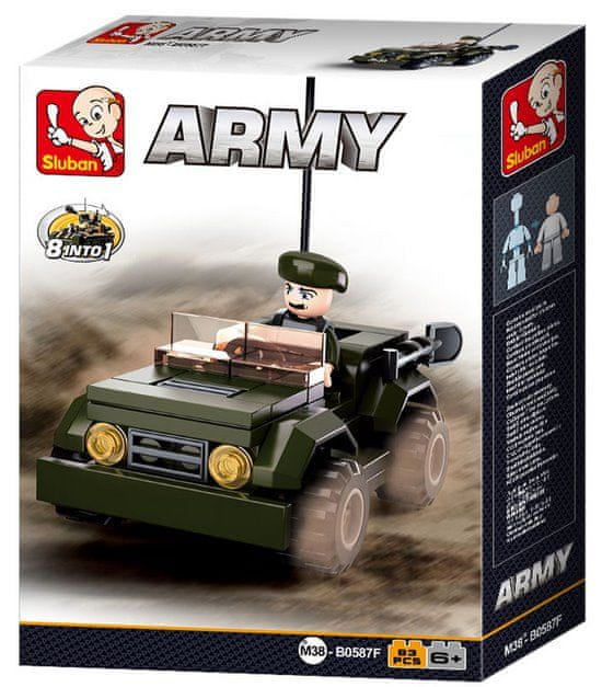 Mini knjiga vojaške opreme iz serije Army 8into1, ki omogoča izdelavo velikega popolnega modela tanka ali oklepnega vozila. Inovativne Slubanove komplete je mogoče kombinirati s podobnimi kompleti številnih drugih velikih proizvajalcev. Izdelani so iz visokokakovostne, varne in trpežne plastike ABS. Vsak komplet je opremljen z navodili za sestavljanje in je pakiran v svetlo potiskani papirnati škatli. Glavne značilnosti:82 kosov, 1 figuraSrednja težavnostSkupaj lahko sestavite velik modelInovativne figure z vrtljivimi in nihajočimi deli telesaKompatibilen s kompleti drugih proizvajalcev