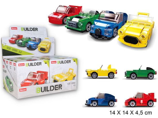 SLUBAN BLOKIRA MODEL VOZIL:  M38– B0885 SERIJA: BUILDER ŠTEVILO ELEMENTOV: 44–45 ZDRUŽLJIVOST Z: drugimi znanimi bloki, STAROST: +6 let SKLADNOST Z EU STANDARDI: CE; EN71 Predstavljeni modeli so 44–45 elementov serije BUILDER Na izbiro: Rdeč avto 7,3 CM·         Modri avto 7,9 CM·         Zelen avto 7,5 CM ·         Rumen avto 7,8CM Na tej dražbi bo kupec kupil samo enega od zgoraj navedenih kompletov, po nakupu v sporočilu navedite za kateri model se boste odločili.
