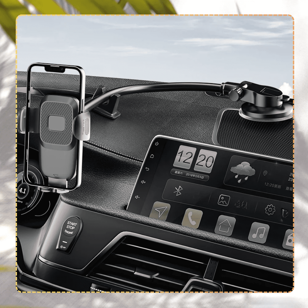 Trdni gumijasti robovi držijo telefon varno na mestu in ga ščitijo pred poškodbami. Z visoko kakovostjo materialov in ponovno uporabno prisesko, ki jo enostavno pritrdite na steklo ali armaturno ploščo, ponuja držalo hitro in brezskrbno namestitev.