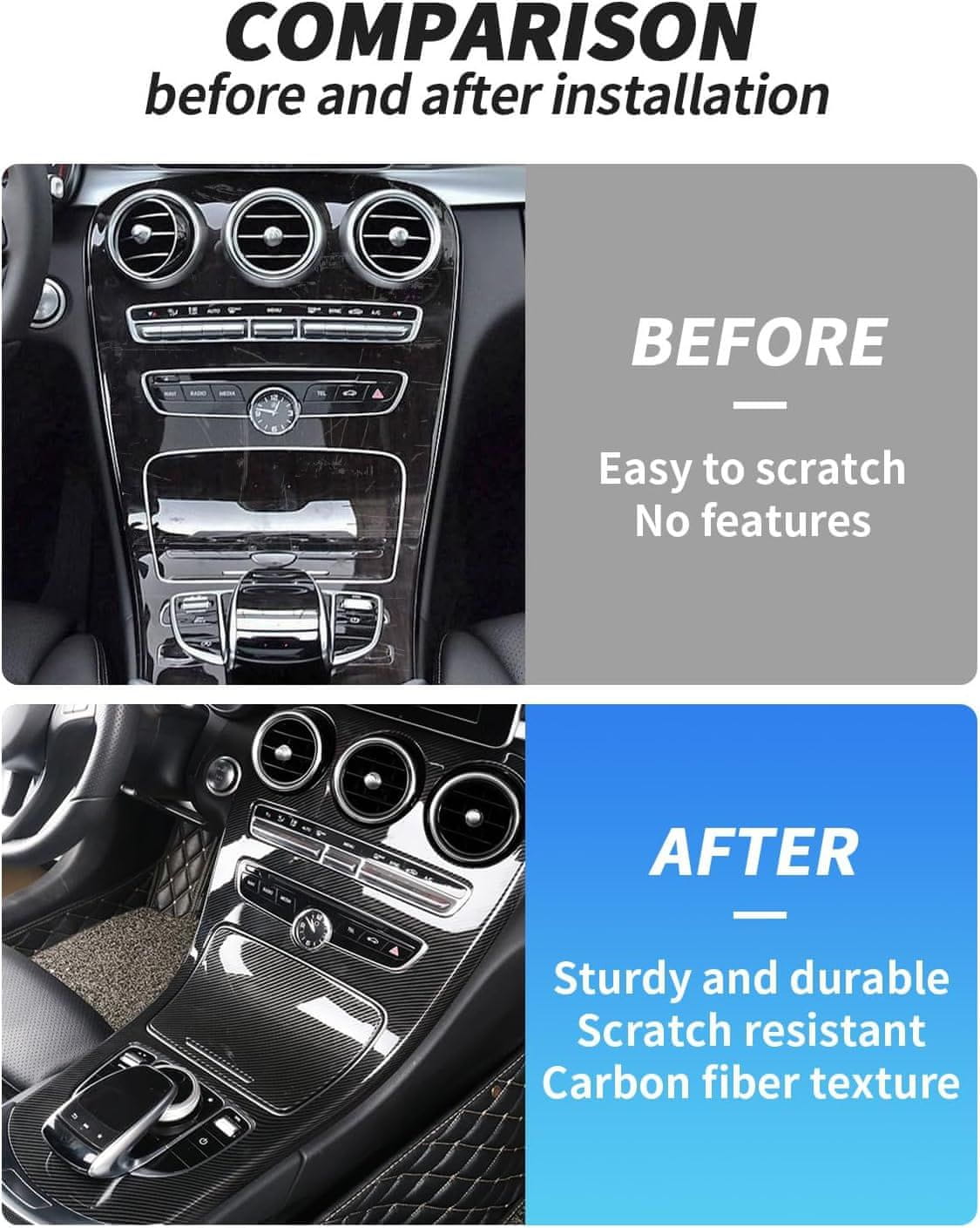 Nikcorp Karbonska prevleka za sredinsko konzolo Mercedes-Benz W205 C-razred in GLC X253 (2015-2018), trpežna ABS plastika, imitacija karbona
