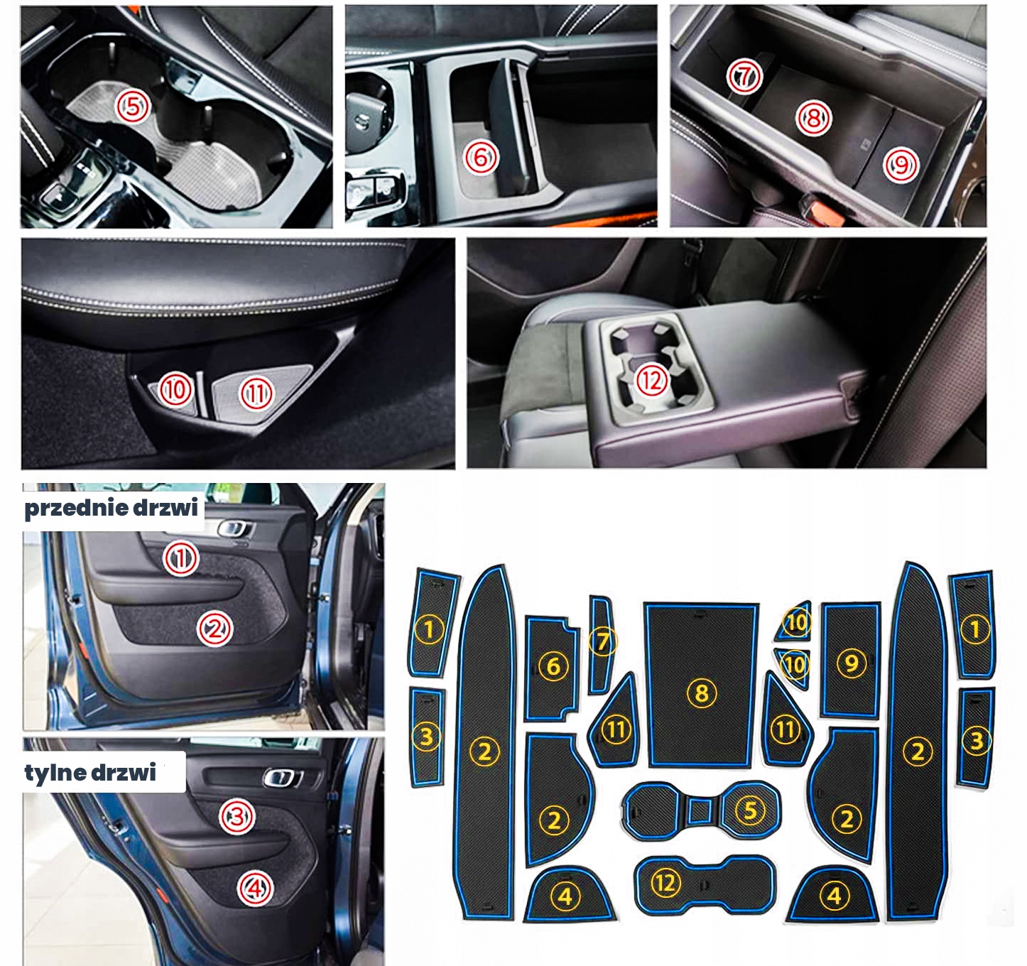 Protizdrsne gumijaste podloge za notranjost avtomobila ter reže na vratih in v kokpitu.
