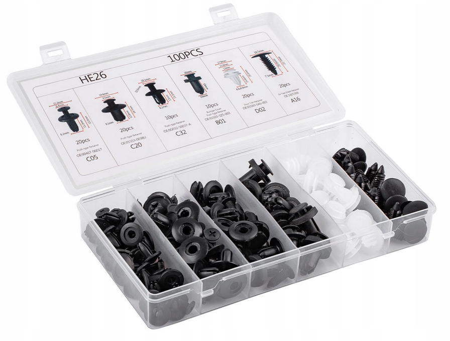 • Komplet 100 univerzalnih avtomobilskih sponk.