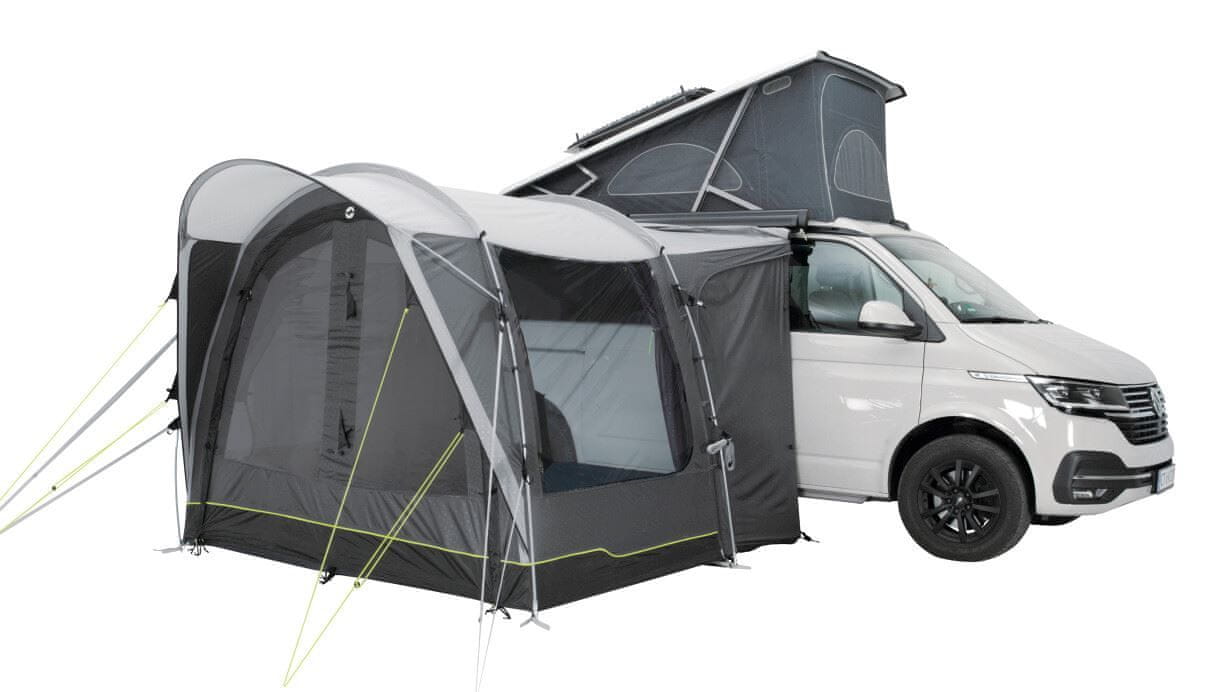 Enostavno postavljiva, bočno nameščena markiza za vozila, ki je idealna za avtodome, ki na počitnicah iščejo dodaten prostor, zagotavlja vsestranski bivanjski in spalni prostor. Vrata in okna z mrežastimi paneli poskrbijo za dobro prezračevanje, brez nadležnih insektov.