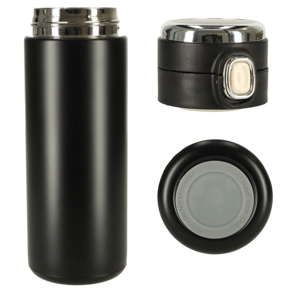 WOWO LED Termovka Black - Črna LED Termovka z ustnikom za termalno vodo, 420 ml