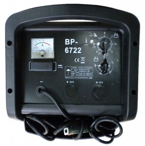 • Enofazni, prenosni avtomobilski polnilnik Bass Polska, zasnovan za polnjenje 12/24 V svinčeno-kislinskih akumulatorjev in pomoč pri zagonu vozil ter za polnjenje popolnoma izpraznjenih akumulatorjev.