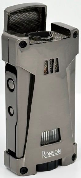 Vžigalnik RONSON HURRICANE RGL119 GREY SATEN s 3 jeti in luknjačem Celoten opis
