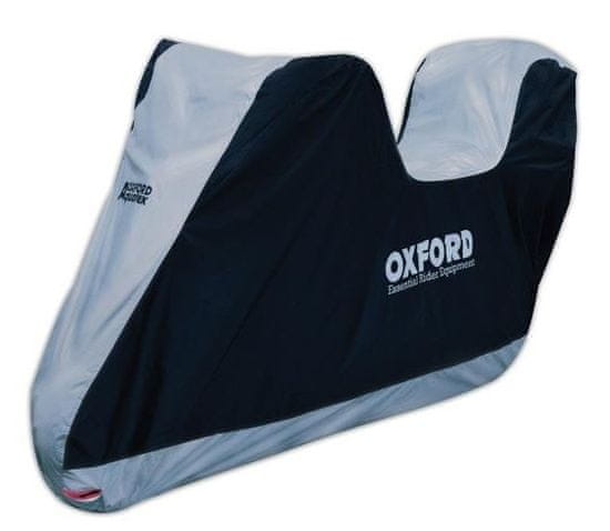 Zaščitno pokrivalo za motor Oxford Aquatex nudi popolno zaščito iz notranje in zunanje strani. Dvojno šivan najlon je zelo trpežen, vzdrži temperature do 150 °C in ne prepušča vlage. Spodnji del je raztegljiv in se zato odlično prilega vozilu. Nudi zaščito pred prahom in dežjem, priložena pa je tudi priročna torba za shrajevanje pokrivala.