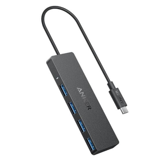 Anker HUB Anker A8309G11 | USB-C razdelilec s 4x USB-A, hitrost prenosa 5 Gbps, črna barva, Plug and Play