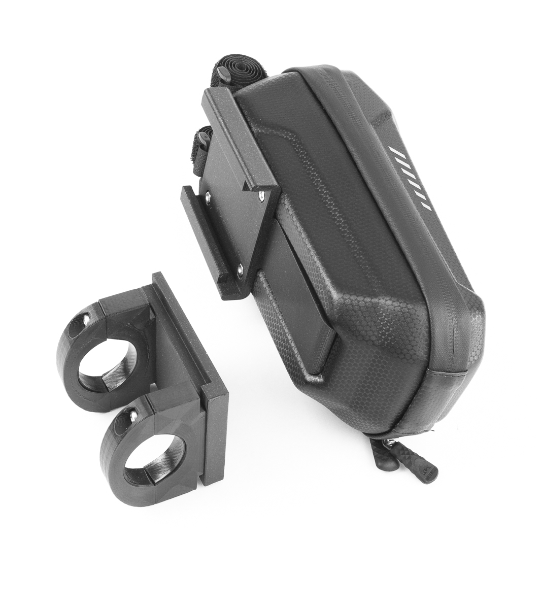 Dvojni sistem pritrditve zagotavlja večjo nosilnost in veliko večjo stabilnost v primerjavi z drugimi rešitvami, ki temeljijo na ježku/kabelskih vezicah, prostornina torbe pa vam omogoča, da prevažate veliko majhnih predmetov.