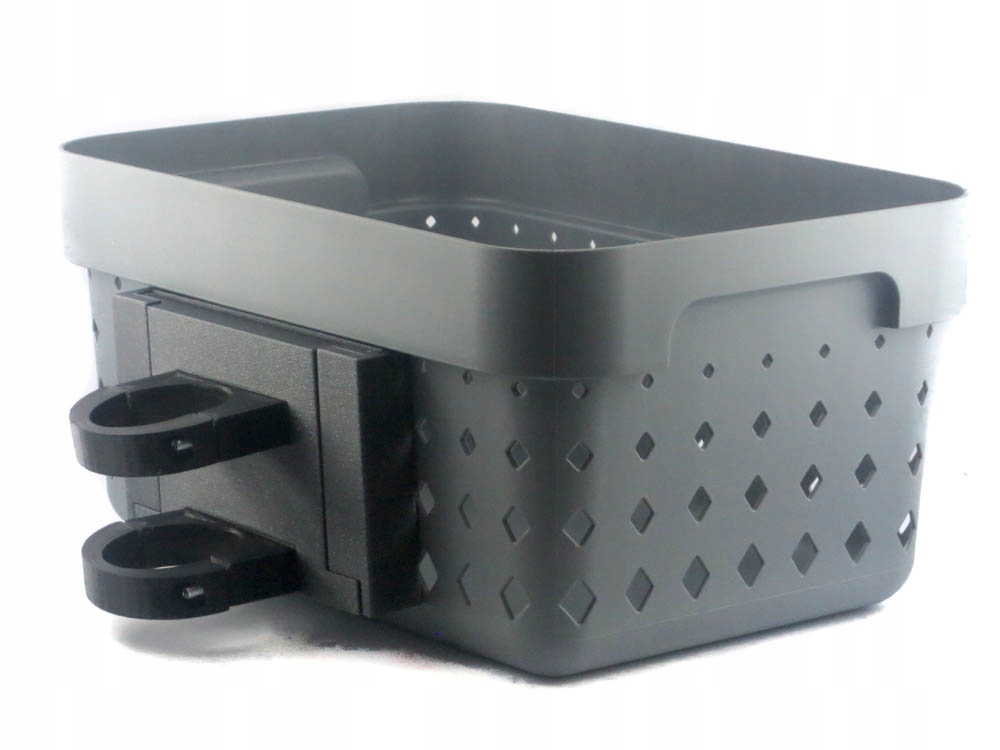 (Fotografije prikazujejo košaro, nameščeno na vzorčnem skuterju druge znamke. Prodajani izdelek je dobavljen s kompletom objemk, prilagojenih skuterju, navedenemu v opisu ponudbe)