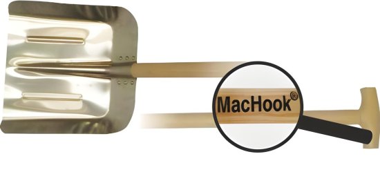 Aluminijasta lopata debeline 1,6 mm z lesenim T-ročajem dolžine 120 cm.