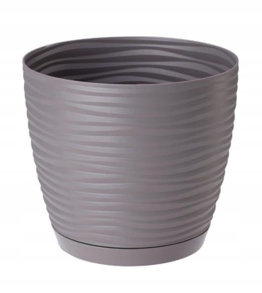 shumee Cvetlični lonček s krožnikom, okrogel, siv, 12,7 x 11,8 cm, plastika