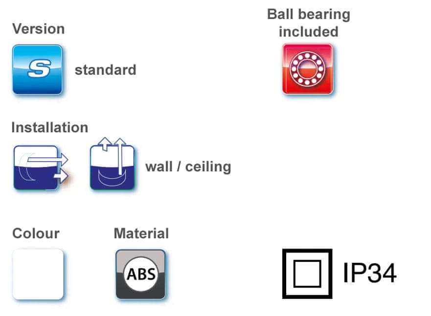 shumee Stenski/stropni kopalniški ventilator Silenta 125 mm, standardna izvedba