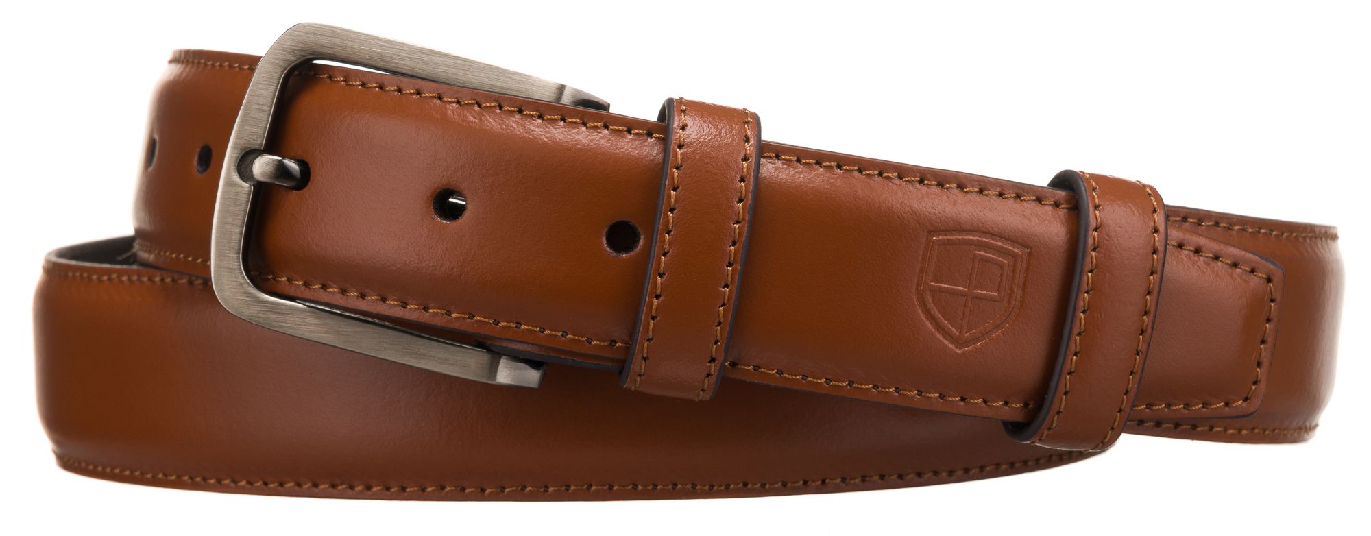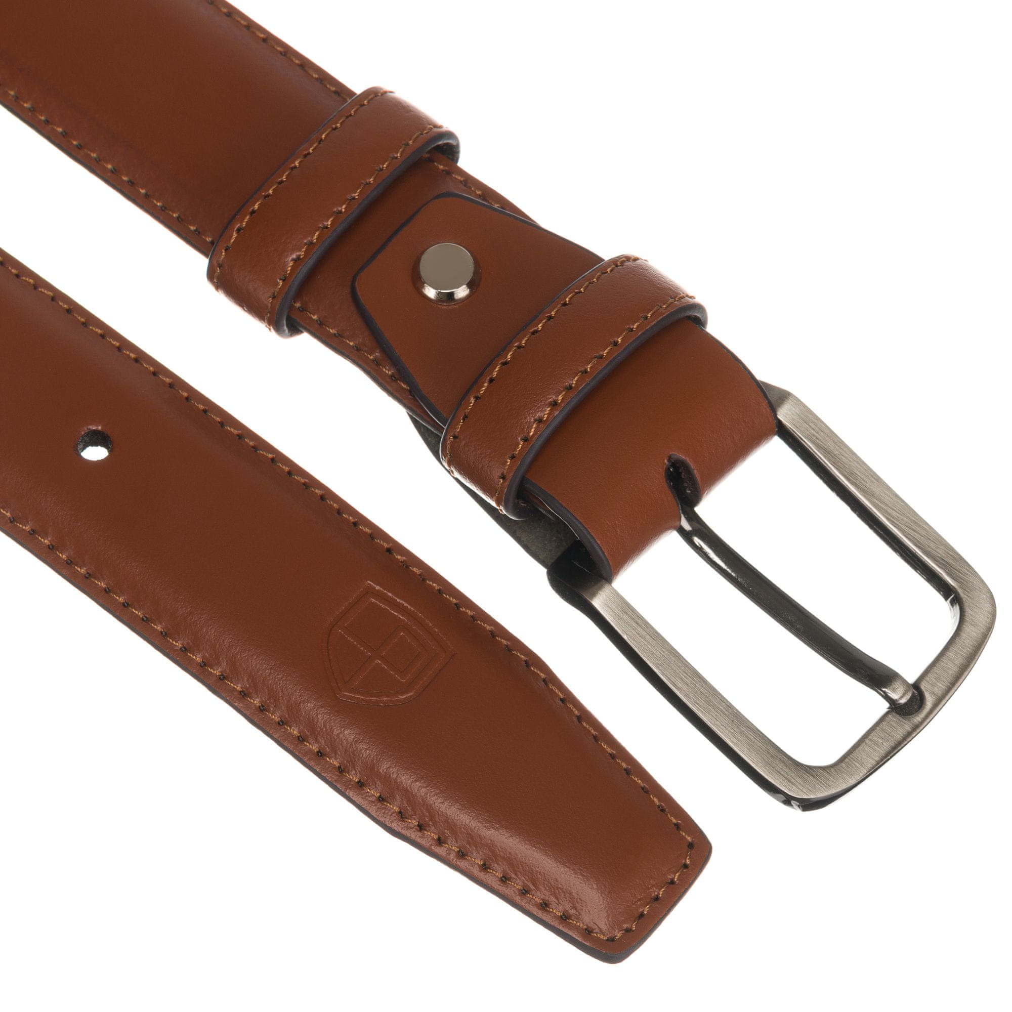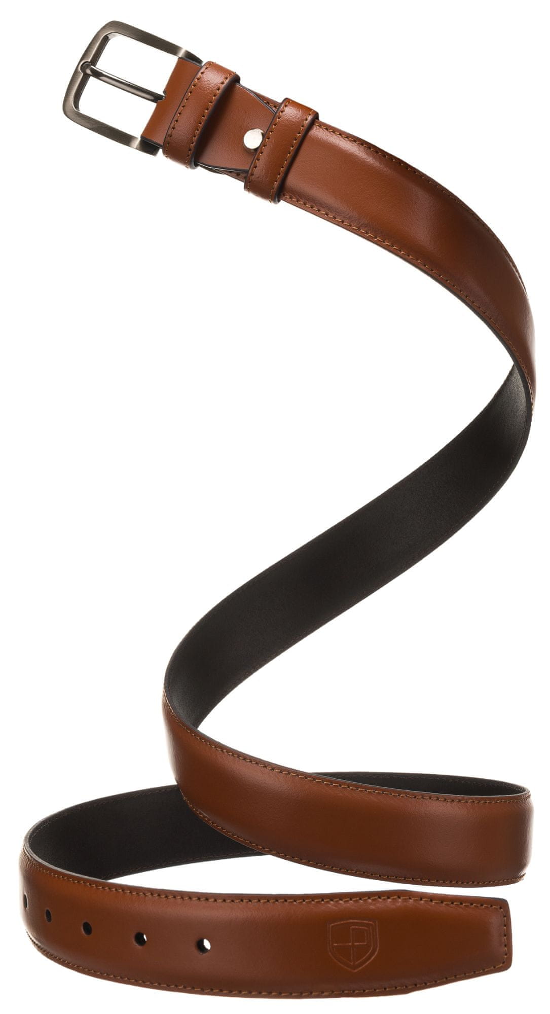• Osredotočenost na podrobnosti | Eleganten pas v vedno modni rjavi barvi, okrašen z nežnimi, tankimi enovrstnimi šivi na robovih;
