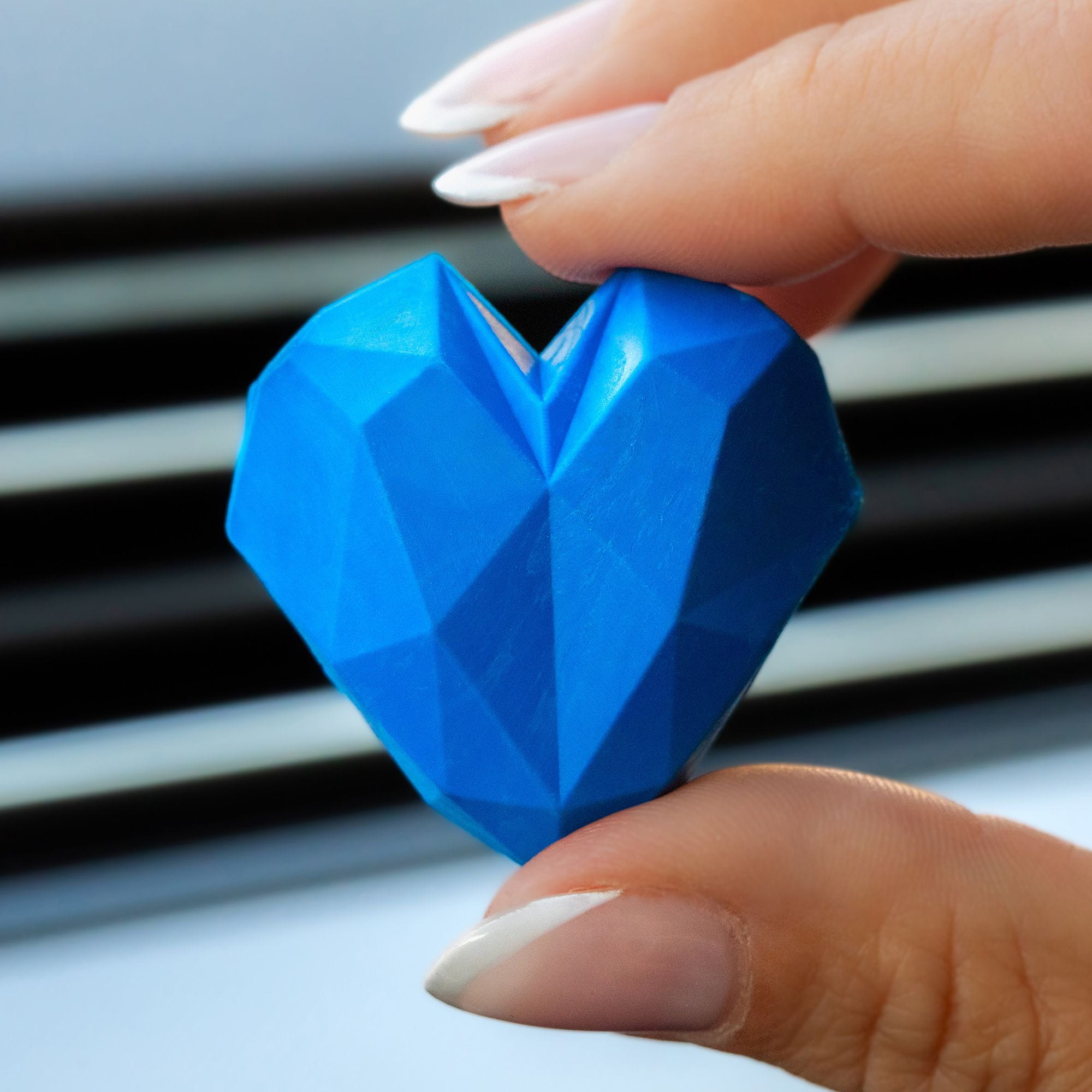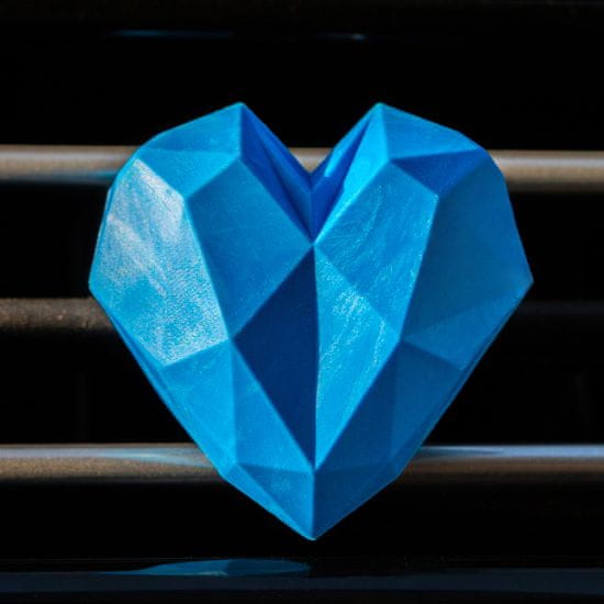 Luksuzni osvežilec in modni dodatek za vaše vozilo. Oblika diamantnega srca poskrbi za igro svetlobe in senc, zato izdelek lepo zapolni in popestri vaše vozilo. Narejen je v Sloveniji iz recikliranih materialov. Primeren tako za dame kot gospode. Celoten opis