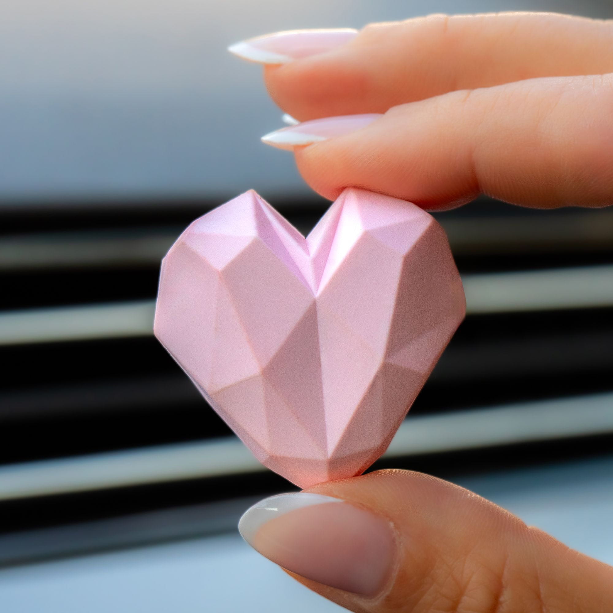 Luksuzni osvežilec in modni dodatek za vaše vozilo. Oblika diamantnega srca poskrbi za igro svetlobe in senc, zato izdelek lepo zapolni in popestri vaše vozilo. Narejen je v Sloveniji iz recikliranih materialov. Primeren tako za dame kot gospode. Celoten opis