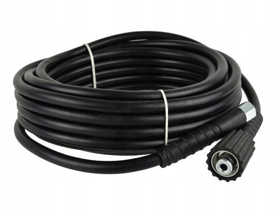 Cev ima najlonsko pletenico zaradi česar je zelo prožna in trpežna Tehnični podatki Dolžina cevi 10 m Najvišja temperatura vode 60 C Tlak 200 barov Matica pištole Konica CLICK Podložna matica 22 mm navoj M22 × 15