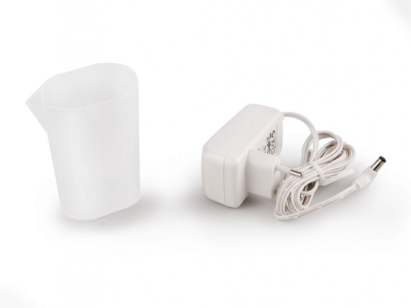 Vlažilec zraka z difuzorjem odišavi in navlaži zrak. Združuje učinke vodne meglice in eteričnih olj. Z nežnimi ultrazvočnimi valovi razbije eterična olja v izjemno majhne mikrodelce, ne da bi jih segreval. Olja tako ohranijo svojo prvotno aromo in zdravilne lastnosti. Aroma difuzor vam bo pomagal ustvariti dišečo oazo v vsakem prostoru in ustvariti sproščujoče vzdušje. Aroma difuzor brez dodatka eteričnega olja služi kot vlažilnik zraka. Z dodatkom določenega eteričnega olja lahko sebi ali svojim bližnjim pomagate pri različnih boleznih. Že nekaj kapljic kakovostnega olja lahko olajša prehlad, kašelj, glavobol ali slabo spanje. Pravo olje bo očistilo zrak ali pa preprosto poskrbelo, da bo v prostoru, v katerem se nahajate, bolj prijetno. Primerno za dnevne prostore, otroške sobe, sejne sobe, masažne salone, wellness centre itd. Z ustreznimi eteričnimi olji lahko spodbudite sproščujoče vzdušje v spalnici, razkužite zrak ali poskrbite za miren spanec v otroški sobi. Koncentracija v študentski sobi ali sproščena komunikacija doma ali v delovnem okolju. Vedno uporabljajte kakovostna olja. Z uporabo poceni umetnih olj lahko ustvarite dišeče okolje, vendar se telo in um ne bosta spočila. Nasprotno, lahko škoduje občutljivim osebam. Na primer glavoboli itd. Med delovanjem aroma difuzorja lahko poljubno in preprosto nastavite svetlobne učinke, ki bodo v prostoru ustvarili zelo prijetno okolje in sproščujoče vzdušje. Aroma difuzor je primeren povsod, kjer zaradi varnosti ni mogoče uporabiti odprtega ognja (sveče v aroma svetilkah). Združuje učinke vodne meglice in eteričnih olj. Delovanje aroma difuzorja je zelo preprosto. V rezervoar natočite vodo, po možnosti destilirano. V napravo kanete nekaj kapljic eteričnega olja in jo vklopite s pritiskom. Aroma difuzor takoj začne ustvarjati vodno meglico in razpršiti olje v zrak. Hkrati menja barvno osvetlitev ozadja. Z drugim pritiskom lahko izberete določeno barvo osvetlitve. Tretji pritisk izklopi barvno osvetlitev, četrti pritisk pa zaustavi delovanje aroma difuzorja. Količine vode v rezervoarju vam ni treba preverjati. Po izpraznitvi se aroma difuzor sam izklopi.