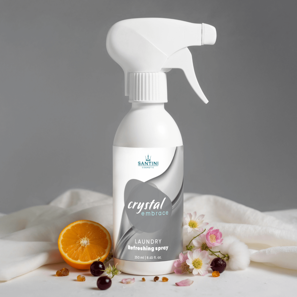 Dopustite, da vaša tkanina zasije s pridihom elegance in svežine – brez pranja. Osvežilec tkanin in sprej Santini – Crystal Embrace ponuja prefinjen način osvežitve odej, kavčev, zaves in oblačil. Njegova nežna, a dolgotrajna parfumarja iz francoskih esenc takoj nevtralizira vonjave in pusti tkanine sveže in dišeče.