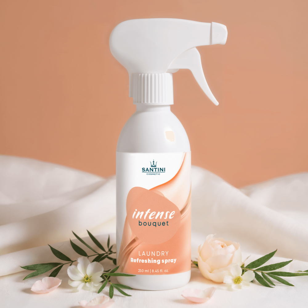 Podarite svojim tkaninam pridih elegance in svežine brez potrebe po pranju. Osvežilec tkanin in pršilo za oblačila Santini – Intense Bouquet prinaša prefinjen način odišavljanja pregrinjal, kavčev, zaves in oblačil. Zahvaljujoč nežni, a dolgotrajni dišavi iz francoskih esenc takoj nevtralizira neprijetne vonjave in tkanine pusti sveže ter prijetno dišeče.