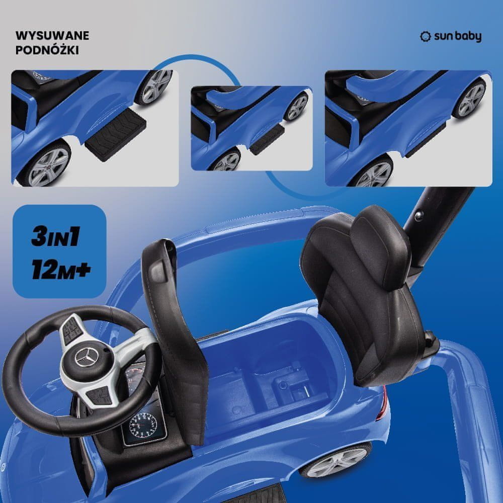 Otroška hojica Sun Baby Ride-on Mercedes razreda C s potisnikom in naslonom za noge modre barve
