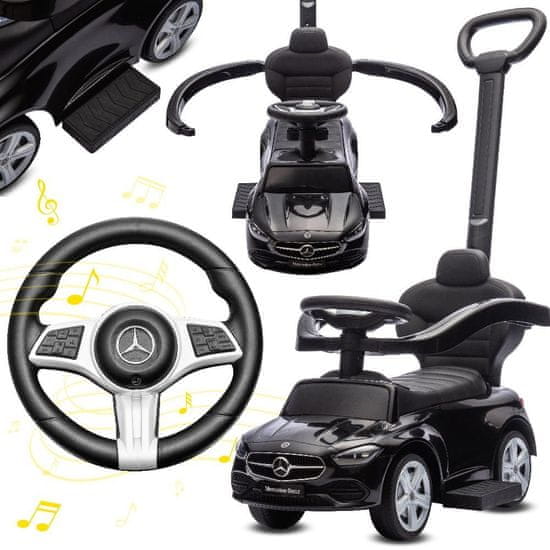 Otroška hojica Sun Baby Ride-on Mercedes razreda C s potisnikom in naslonom za noge črne barve