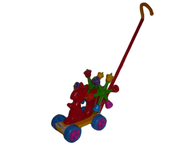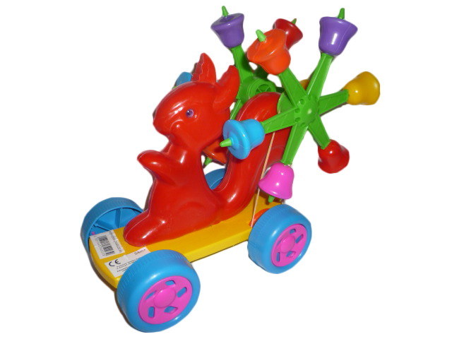 Igrači je priložena palica z ročajem, s katerim lahko otrok potiska veverico.