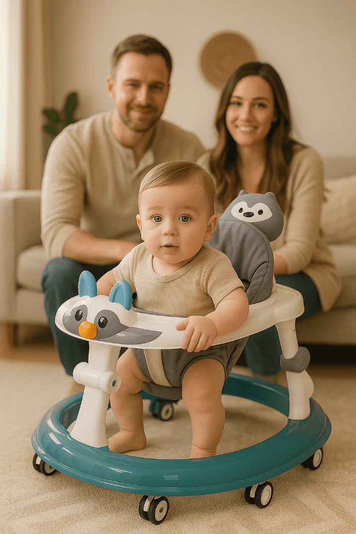 Hodulja Tavalax – pametna rešitev za otrokove prve korake Odkrijte kakovost, udobje in varnost v enem izdelku – hodulji Tavalax, ki je zasnovana z mislijo na stopnjo rasti vsakega otroka. To ni le hodulja – je popolna podpora, ki vašemu otroku pomaga, da varno, udobno in zdravo naredi svoje prve korake. Glavne prednosti: Ergonomska zasnova s 360-stopinjsko podporo – posebej zasnovan okrogel sedež s strukturo v obliki črke U pomaga enakomerno porazdeliti otrokovo težo in zmanjšati pritisk na noge. Nastavljiva višina (razpon nastavitve 10 cm) – kombinirana dvostopenjska prilagoditev podvozja in sedeža omogoča, da hoduljo prilagodite otrokovi idealni višini. Mehka, ojačana hrbtna opora – optimalna podpora hrbtenici, ki spodbuja zdravo držo med rastjo. Odstranljiva igralna konzola/jedilna miza – preoblikovanje igralnega območja v udobno jedilno mizo z eno roko. Luči in glasba – barvni gumbi, mehki svetlobni učinki in priljubljena glasba razvijajo otrokove čute in motorične sposobnosti. Varnost in stabilnost: široko podnožje v obliki črke U (70 cm x 65 cm) – zagotavlja večjo stabilnost, preprečuje prevračanje in omogoča otroku prosto manevriranje. 8+1 kolesa z možnostjo vrtenja za 360° – izjemno gladko gibanje v vse smeri, tudi na ravnih tleh. Mehki gumijasti ščitniki koles – ščitijo tla pred poškodbami in zmanjšujejo hrup. Kompakten in enostaven za uporabo: Enostavno zlaganje z eno roko – idealen za dom, potovanja ali majhne prostore. Oblika, ki navdušuje Primeren za dečke in deklice – zaradi mehkih barv, igrivega obraza živali na sprednji strani in priljubljenih otroških elementov je ta hodulja zelo priljubljen spremljevalec pri rasti. Tavalaxa ne odlikuje le skrbno premišljena ergonomska zasnova, temveč tudi osredotočenost na zdravo rast otroka – po višini nastavljiv sedež preprečuje deformacije nog v obliki črke O, podporna zasnova pa krepi spretnosti hoje že od prvega poskusa. Naj vaš otrok z nasmehom raziskuje svet – hodulja Tavalax je več kot le pripomoček za hojo. Je kombinacija varnosti, udobja in ustvarjalnosti, ki vsakemu staršu olajša vsakdanjo rutino, vašemu otroku pa prinese veselje!