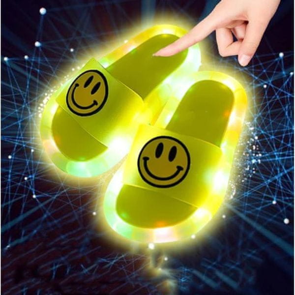 Doživite neskončno zabavo z natikači z LED efektom! Ti nasmejani natikači se prižgejo ob vsakem koraku in obračajo glave, kamorkoli greste. S funkcijo samodejnega vklopa in izklopa so preproste za uporabo. Odlični so za notranje in zunanje dogodivščine – v bazenih, na plažah ali v parkih. Celoten opis